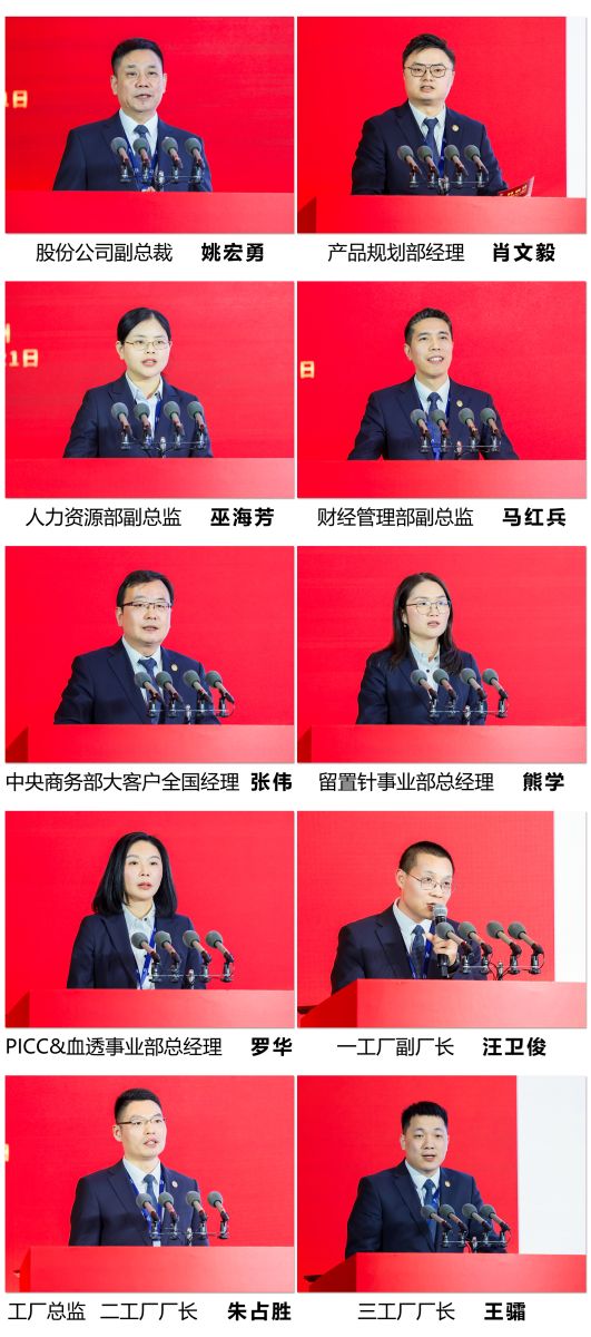 吴林元董事长、吴文燕总裁、姚宏勇副总裁、PICC&血透事业部罗华总经理、留置针事业部熊学总经理及各子公司、各部门相关领导及同志600余人共同出席了本次会议。